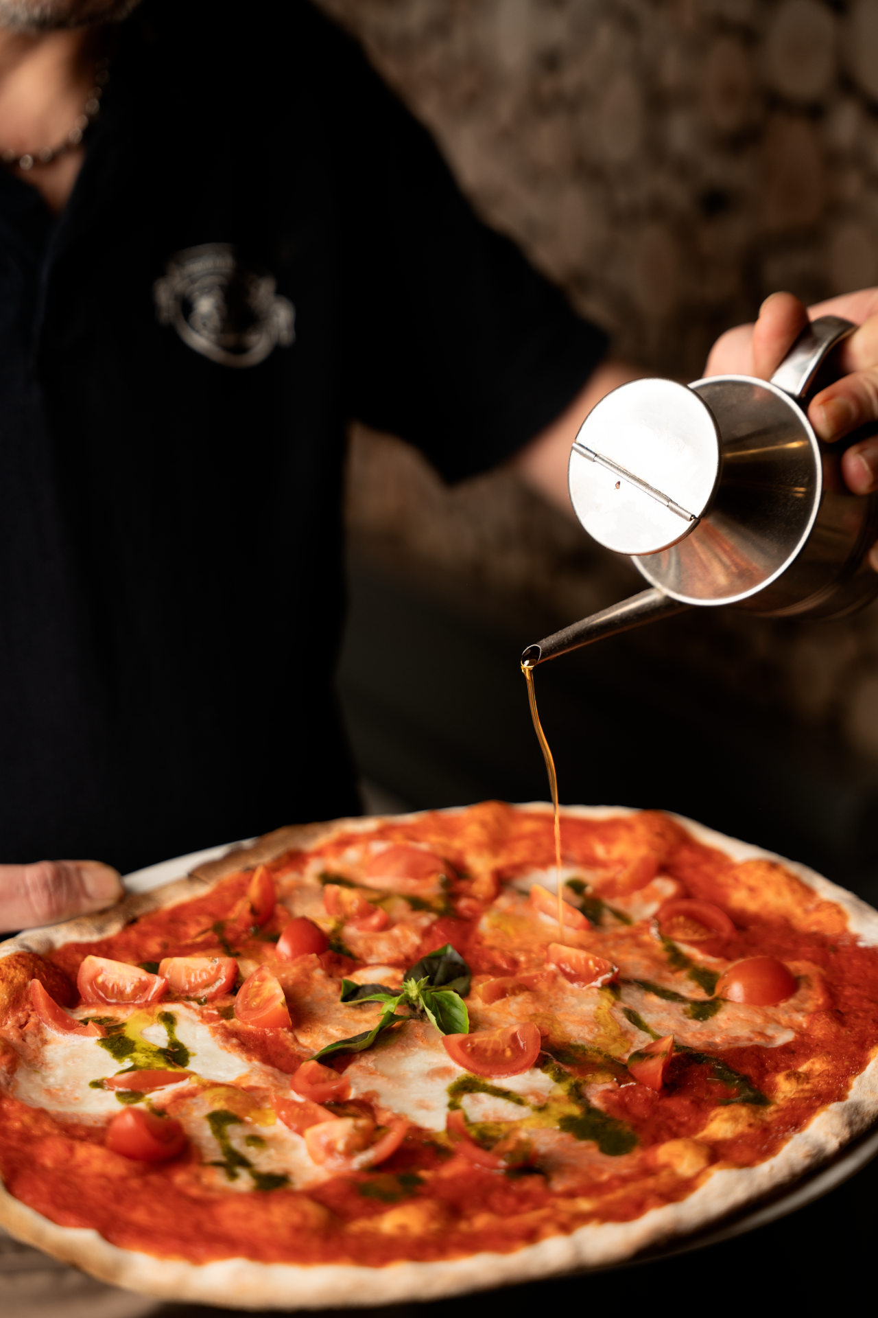 (pomodoro, mozzarella, origano, prosciutto crudo, pomodoro fresco, rucola e grana)